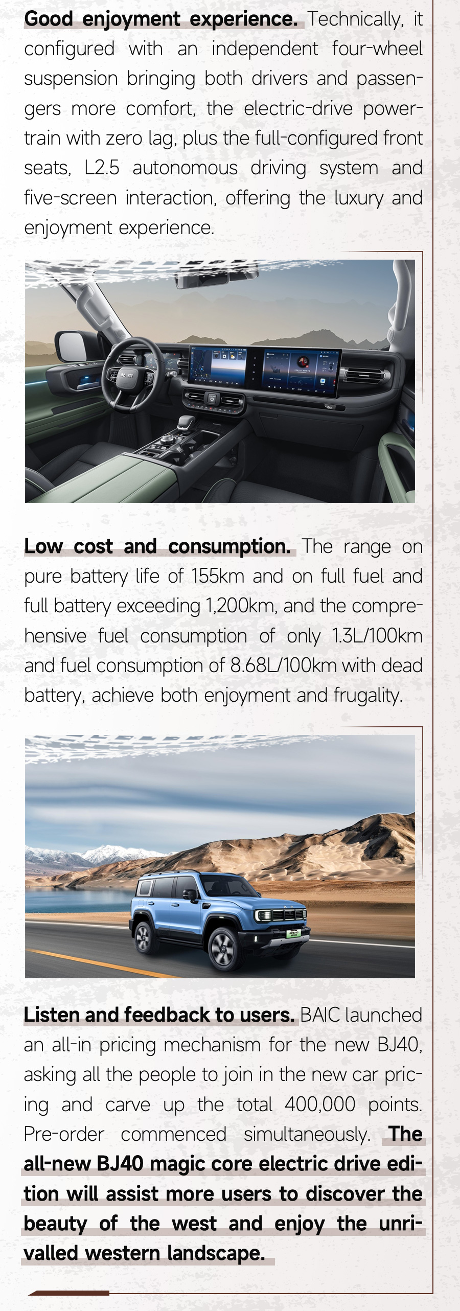 “Cross the west” campaign and all-new BJ40 magic core electric drive edition announced together! BAIC brings the off-road dream to your real life