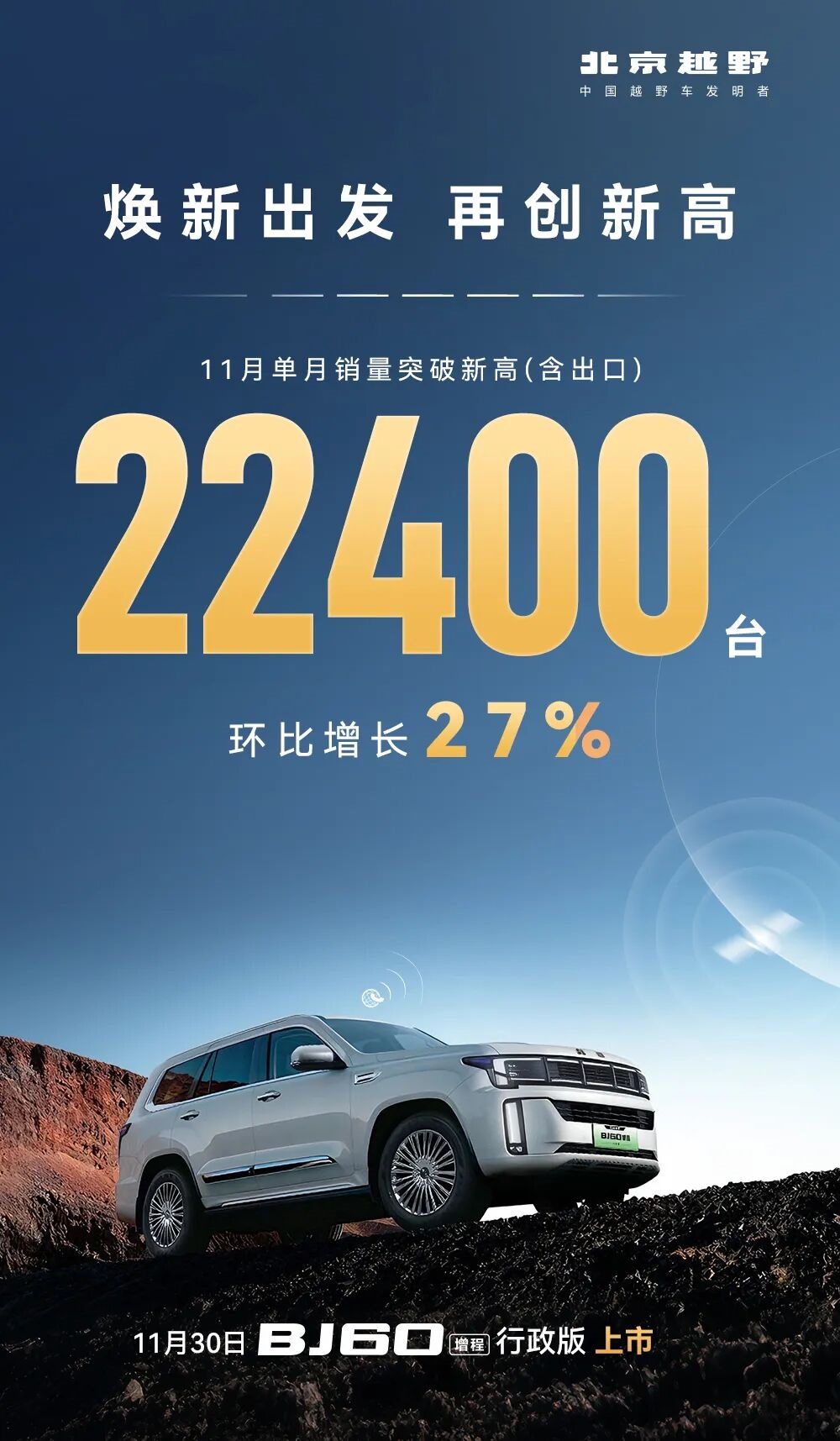 焕新出发 再创新高|北京越野11月销量突破22400台