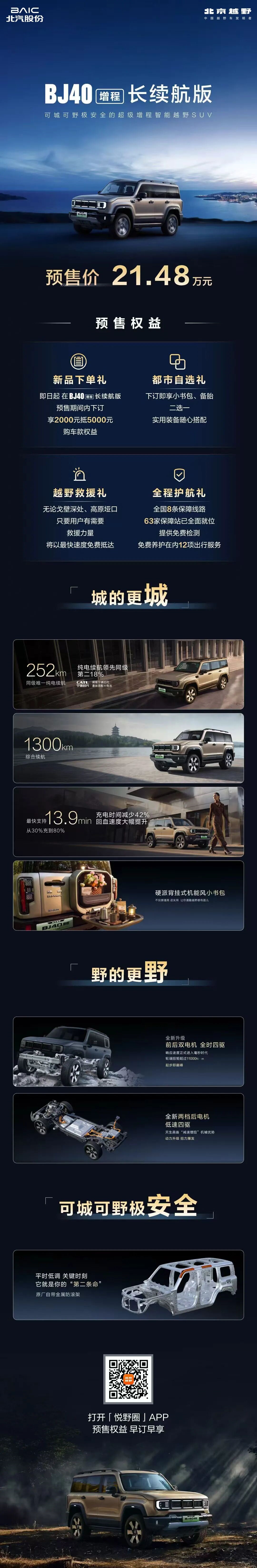 城的更城 野的更野 BJ40增程长续航版预售价21.48万元!