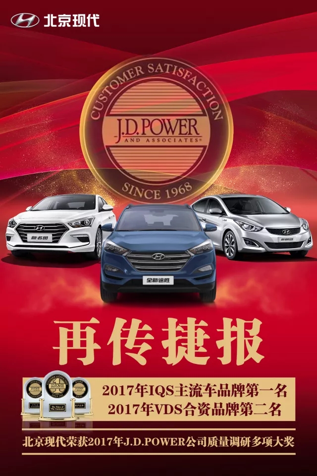 此外,9月21日J.D. Power还公布了2017中国车辆可靠性研究 (VDS),北京现代旗下的全新途胜、全新胜达、新名图三款车型也分别获得各自细分市场第一名。